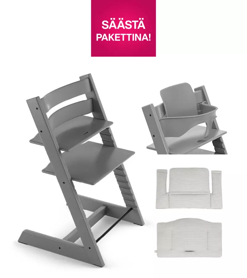 - Stokke Tripp Trapp syöttötuoli värissä Storm Grey - laadukas ja kestävä syöttötuoli, jossa lapsi voi istua vauvasta koululaiseksi saakka.