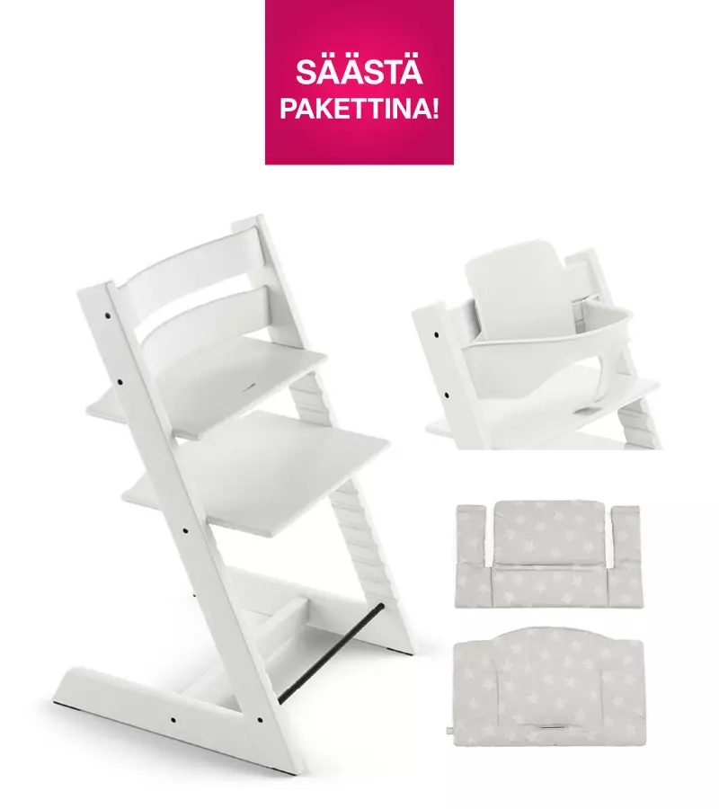 Tripp Trapp syöttötuoli Bundle - Syöttötuoli, Baby Set, Cushion, White värissä.