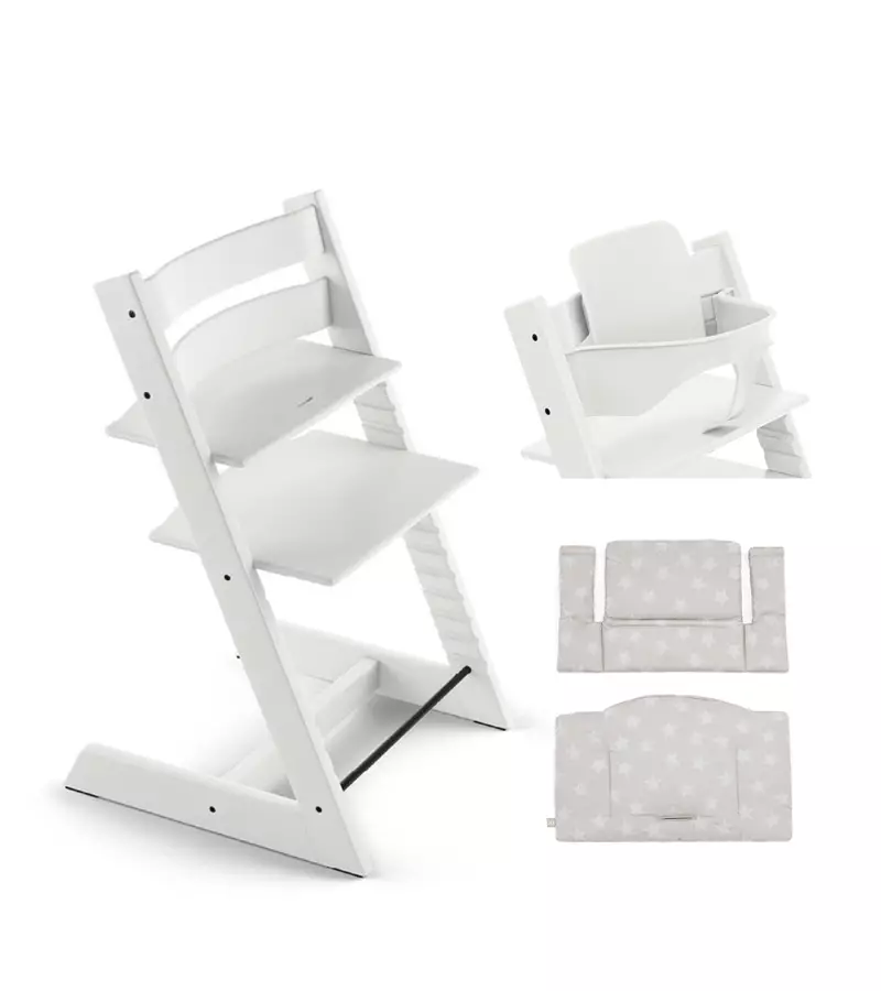 Tripp Trapp syöttötuoli Bundle - Syöttötuoli, Baby Set, Cushion, White värissä.