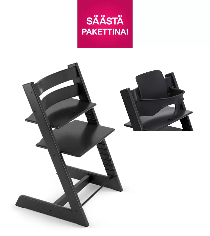 Tripp Trapp syöttötuoli Bundle - Syöttötuoli ja Baby Set, Black värissä.