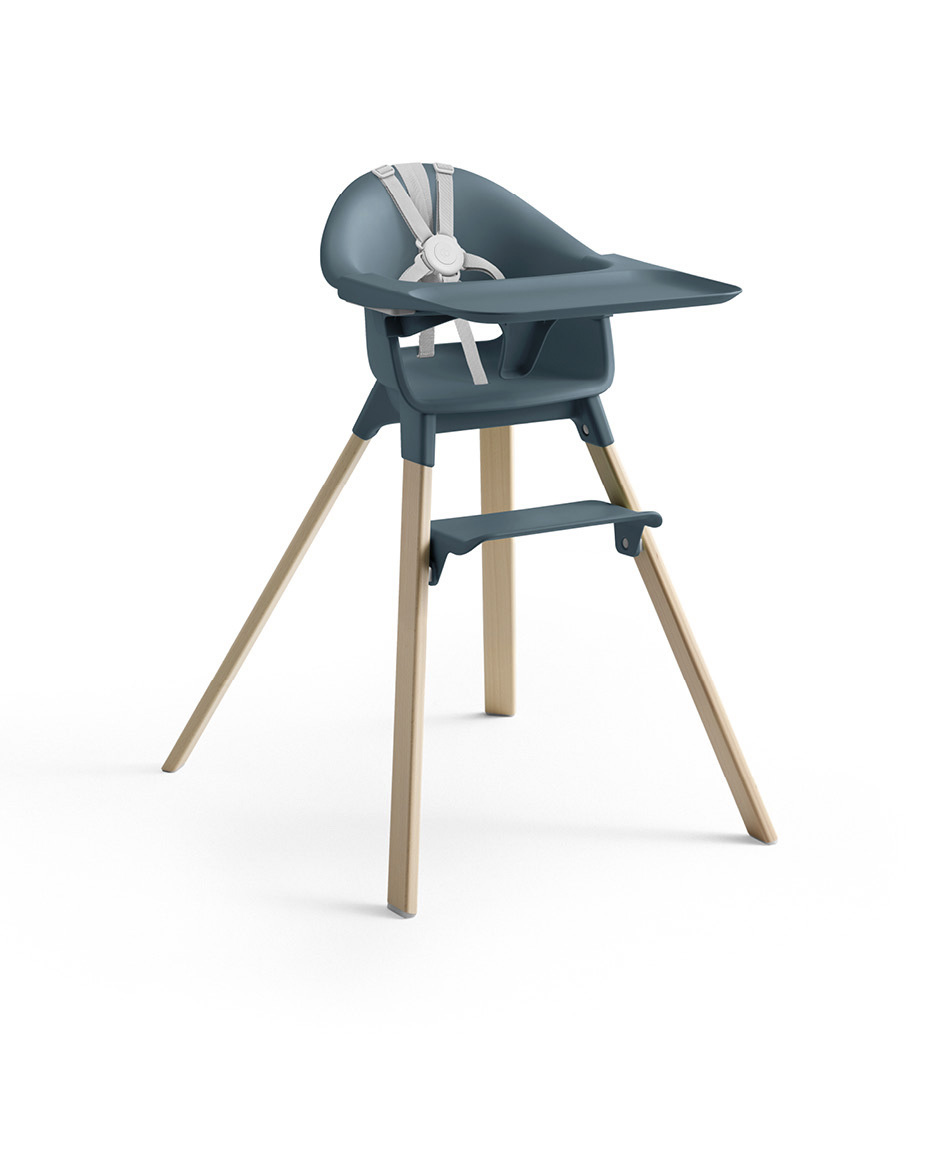 Syöttötuoli Stokke Clikk Fjord Blue on simppeli, helppo ja hyvännäköinen syöttötuoli kotiin, mökille tai vaikka isovanhemmille noin 6 kk ikäisestä alkaen 3-vuotiaaseen asti. Sopii myös matkasyöttötuoliksi, sillä syöttötuoluin jalat saa irroitettua ja pakattua erikseen hankittavaan säilytyskassiin.