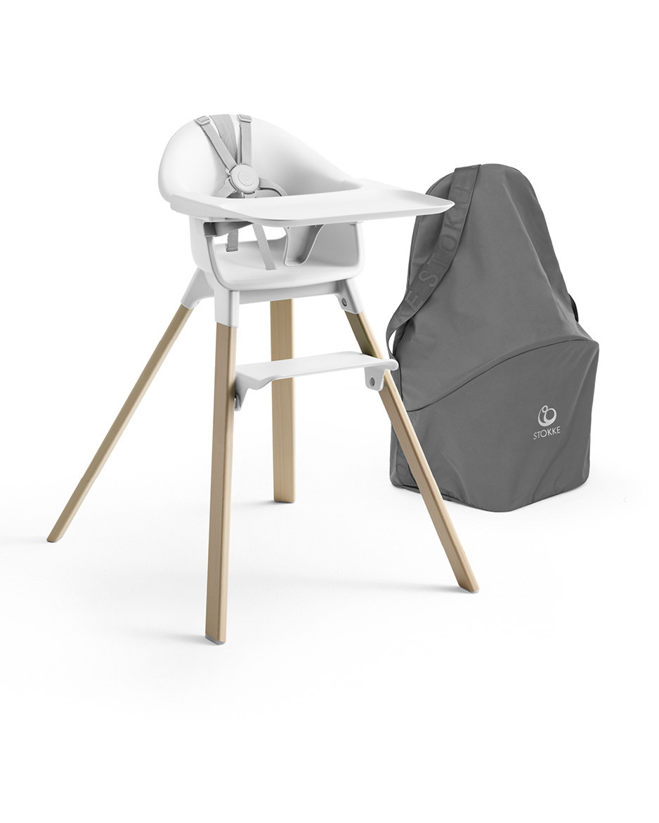 Syöttötuoli Stokke Clikk travel bagilla - paketissa White värinen Stokke Clikk syöttötuoli sekä kuljetuslaukku.
