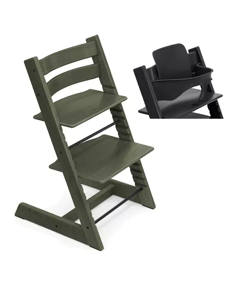 Tripp Trapp starttipaketti Stokke 2 in 1 Marble Green sisältää Stokken Tripp Trapp syöttötuolin värissä Marble Green ja mustan värisen Baby Setin.