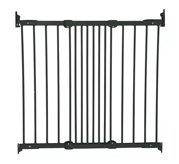 Saranallinen musta lapsiportti erityisesti paikkaan, jossa kiinnityskohdat ovat erikorkeudella. Lapsiportti sopii myös porraskaiteeseen.
