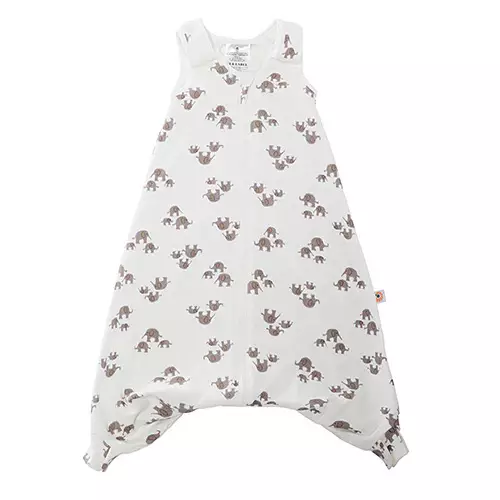 Helppokäyttöinen elefantti-unipussi muuntautuu hetkessä haalareiksi leikkimistä ja taapertelua varten. Unipussissa on kaksisuuntainen vetoketju.