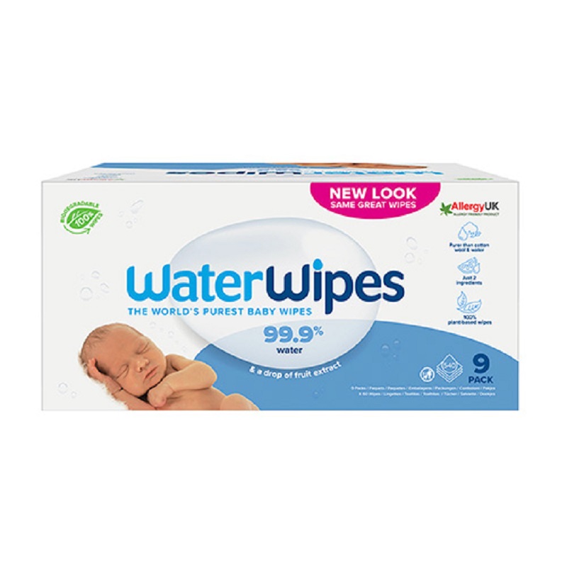 WaterWipes puhdistuspyyhkeet 9x60 kpl soveltuvat vastasyntyneen ja keskosen iholle. Kosteuspyyhkeet ovat suunniteltu herkälle iholle, eikä ne sisällä ylimääräisiä kemikaaleja. Tuote on jopa 99,9% vettä, siksi niitä kutsutaankin WaterWipes, vesipyyhe. Veden lisäksi tuotteessa on vain pisara hedelmäuutetta.