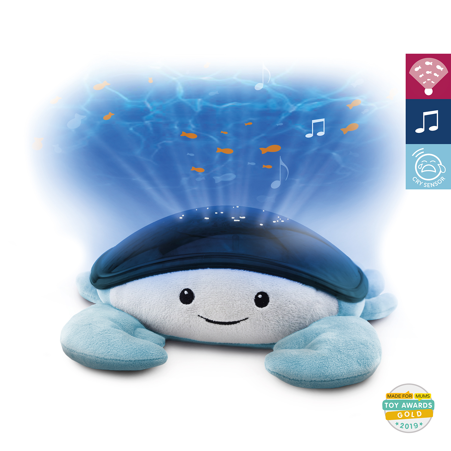 - Nukuttamislelu luo lastenhuoneeseen vedenalaisen tunnelman: huoneeseen heijastuu merenalainen maailma liikkuvien aaltojen ja uivien kalojen muodossa. Lelu soittaa samalla rentouttavia meren ääniä.