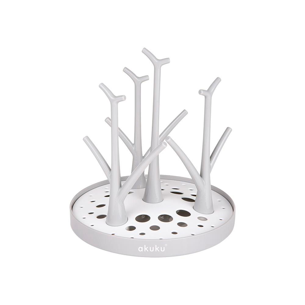 Akuku kuivausteline tuttipulloille ja tuteille. Teline sopii kaikille pullotyypeille ja on helppo taittaa kokoon ja puhdistaa. Kuivaustelineen säiliö kerää ylimääräisen veden pitäen pöytätasot kuivina. Voidaan pestä astianpesukoneen ylätasolla.