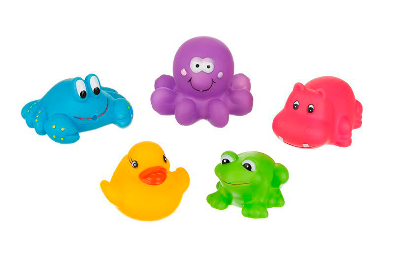 Akuku kylpylelut 5 kpl sisältää viisi värikästä eläinhahmoa: rapu, ankka, mustekala, virtahepo ja sammakko. Värikkäät lelut houkuttelevat iloisiin kylpyleikkeihin. Pyöristetyn muotoiset lelut on valmistettu turvallisista, korkealaatuisista materiaaleista.
