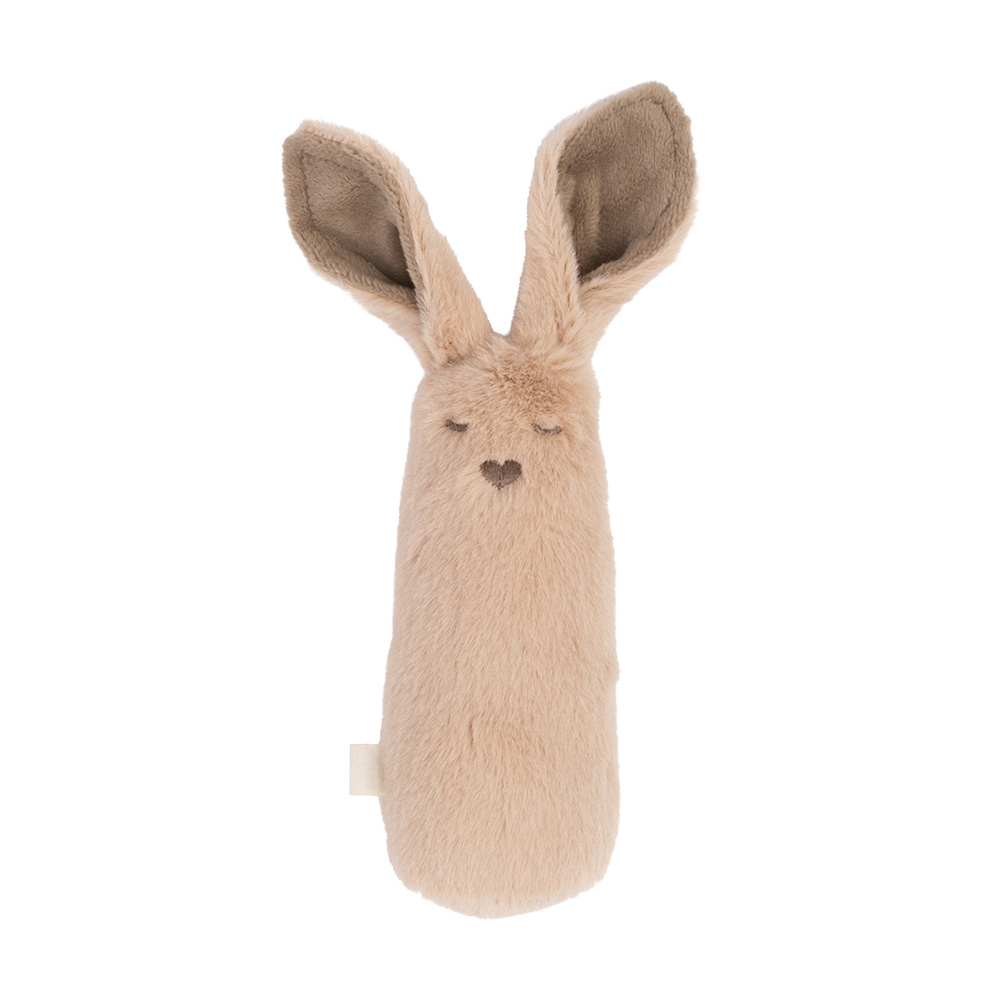 Bibs helistin Kangaroo Rattle Vanilla on pehmeä ja suloinen helistinlelu lapselle. Se on täydellisen kokoinen pienille uteliaille sormille ja lelusta on helppo tarttua kiinni. Kenguru helisee pehmeästi ja sen korvat rapisevat. Lelun kangas on erittäin pehmeää ja sisällä on kierrätetty polyesteritäyte.