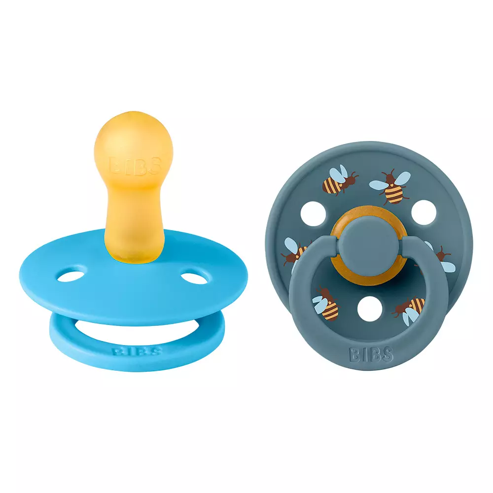 Bibs luonnonkumitutti 2 kpl 6-18 kk, Baby Blue/Dusty Blue Block Studio Collection on suosittu klassikkomalli jo monen vuoden takaa. Tuteissa on hauskat kimalaisen kuvat.