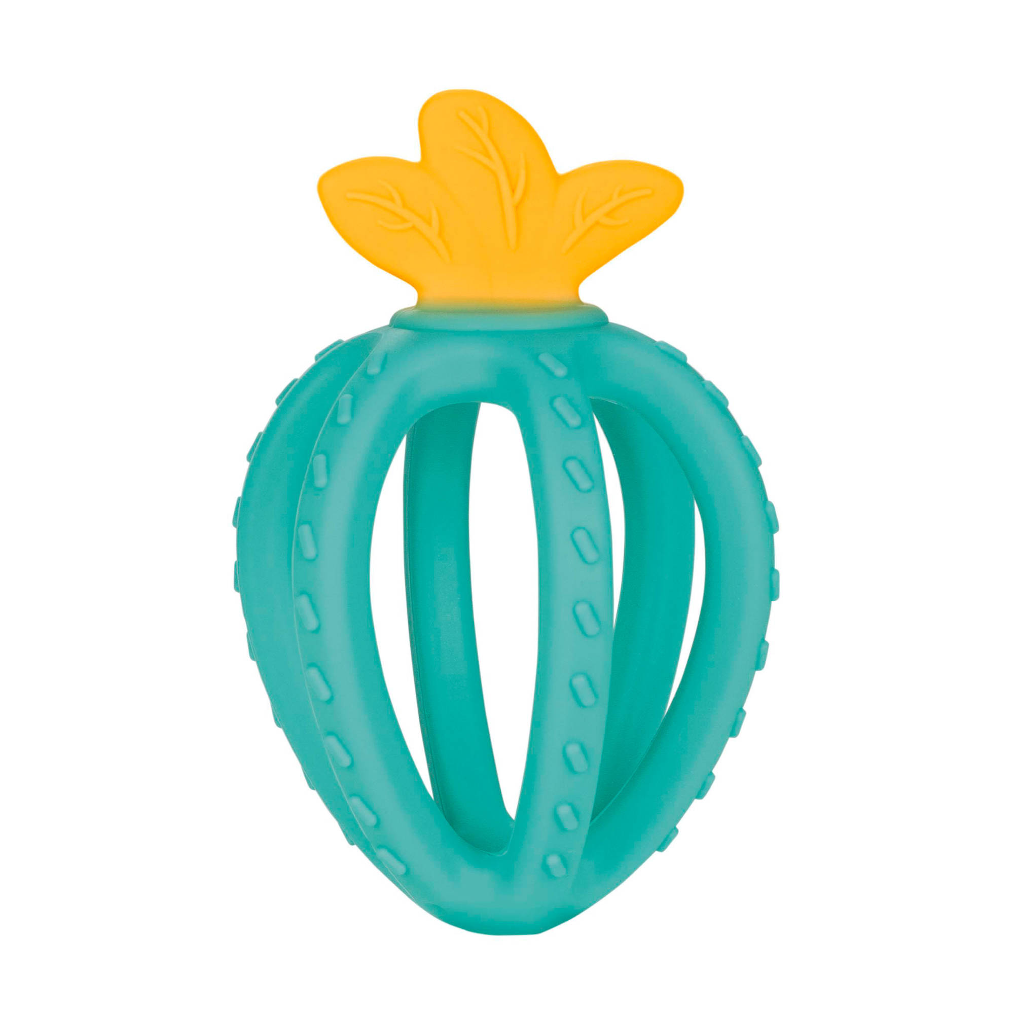 Canpol purulelu 3D BabiesBoo mansikka turkoosi on aistipurulelu vauvoille. 3D-silikonista valmistettu mansikan muotoinen purulelu tuo helpotusta kutiseville ikenille. Purulelu on kevyt ja muotoiltu niin, että siihen on helppo tarttua pienillä käsillä.