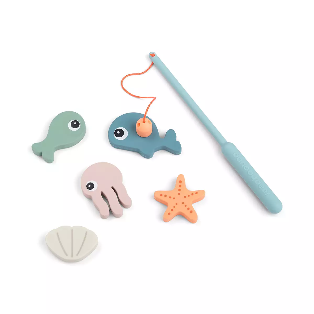 Done By Deer hulvaton kylpylelu, jossa magneettinen onki ja viisi ongittavaa merihahmoa.