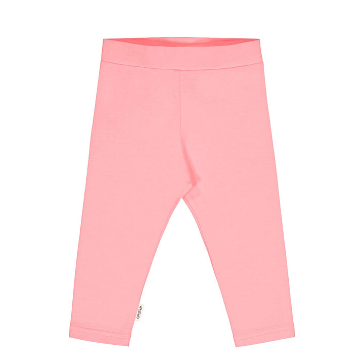 Gugguu Baby Leggins Pink Sorbet on pehmoiset legginsit vauvalle. Pinkin väriset legginsit on valmistettu pehmeästä puuvillasta ja niissä on leveä vyötäröresori.
