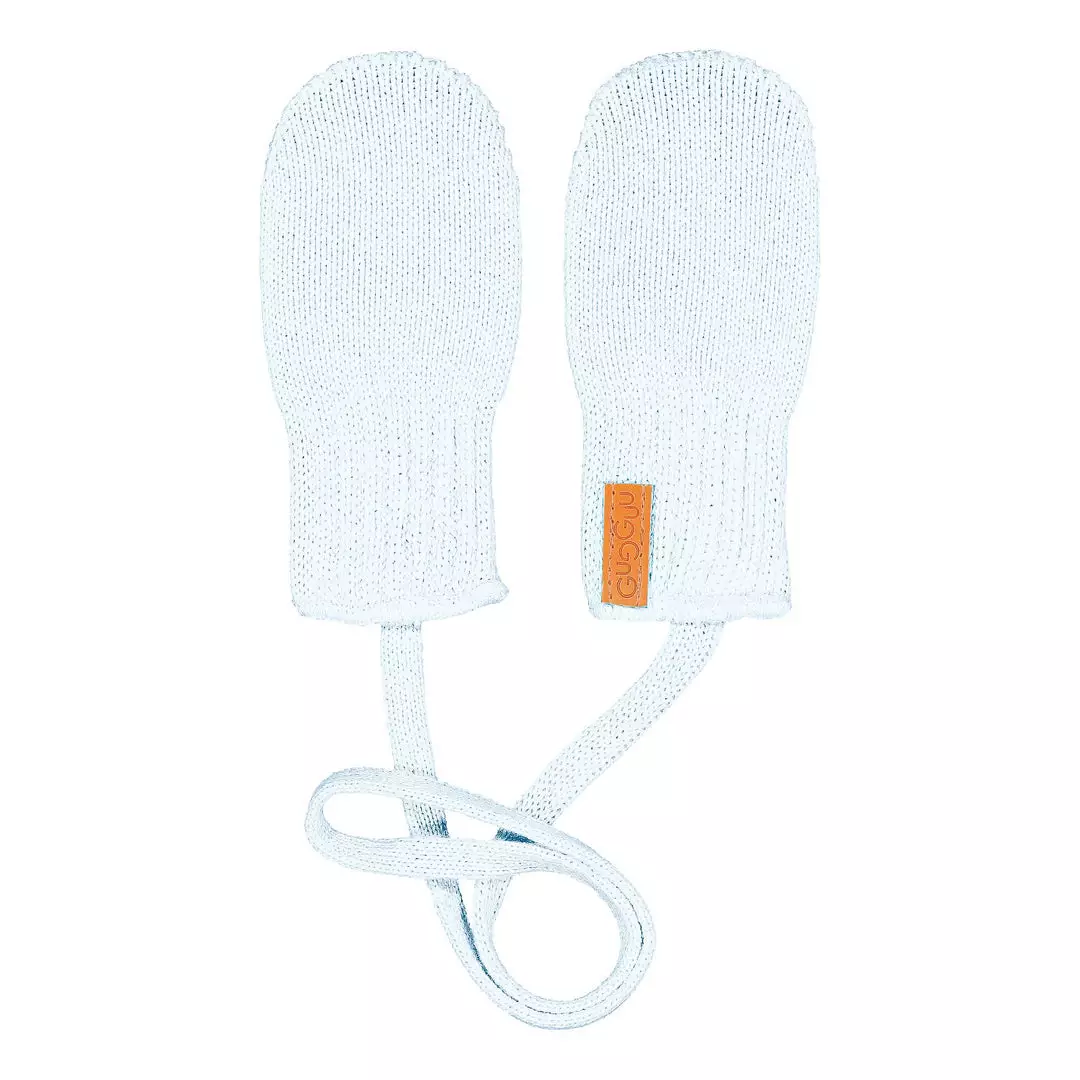 Gugguu Puuvillalapaset Baby Mittens Soft Blue on luomupuuvillaiset lapaset vauvalle. Lapasia kiertää naru, jolla molemmat lapaset pysyy helposti tallessa.