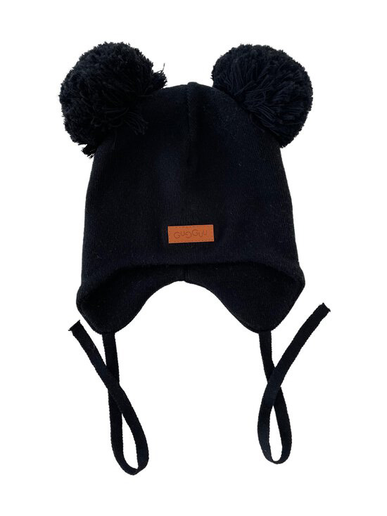 Gugguu Baby Puuvillapipo Double Tuft Black - luomupuuvillainen pipo on Suomessa valmistettu. Gugguun pipo on malliltaan erinomainen ja istuu hyvin lapsen päähän. Päälaella on kaksi suloista tupsua.