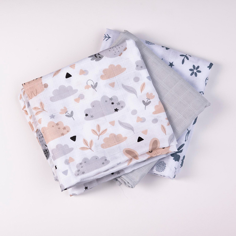 Harsoliinat Lillanel Premium 3-pack harmaa-beige setissä on kolme kaunista harsoliinaa korkealaatuisesta puuvillasta. Erittäin pehmeät harsoliinat ovat monikäyttöisiä vauvan hoidossa. Paketissa kaksi kuvioitua harsoa ja yksi harmaa harso.