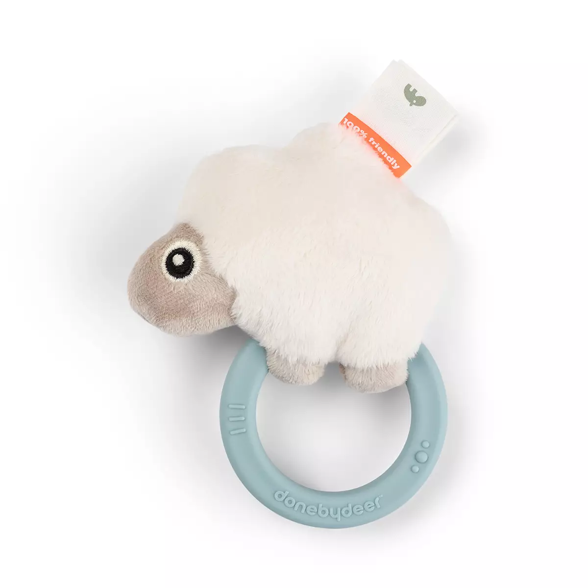 Helistin Done By Deer Sensory Rattle Sheepy Blue on hauska purulelu helistimellä, jossa suloinen eläinhahmo tuo purulelun lisäksi myös viihdykettä lapsellesi. Eläin helisee hempeästi ja on mukavan pehmoinen pienissä sormissa.