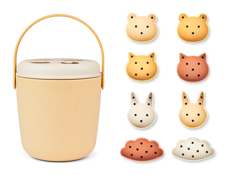 Liewood Jorn hiekkalelusetti Jojoba multi mix on ihastuttava lelusetti pihaleikkeihin. Setti sisältää ämpärin kannella sekä kahdeksan eri muottia, jotka muodostavat yhdessä suositun perinteisen pulmapelin. Sovita oikeat eläinmuotit oikeanmuotoisesta kolosta ämpäriin - kaada muotit ämpäristä ja kokeile uudestaan!