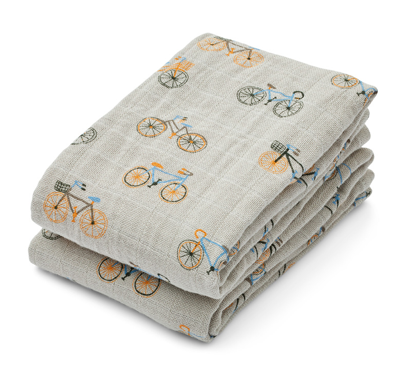 Liewood Lewis Harsoliina 2-pack Bicycle cloud blue pakkauksessa on kaksi suurta harsoliinaa, jotka sopivat vauvan hoitoon moniin eri käyttötarkoituksiin. Harsoliinat ovat pehmeätä luomupuuvillaa ja sopivat herkkää ihoa vasten. Pakkauksessa on kaksi harsoliinaa. Harson koko on 65 x 65cm.