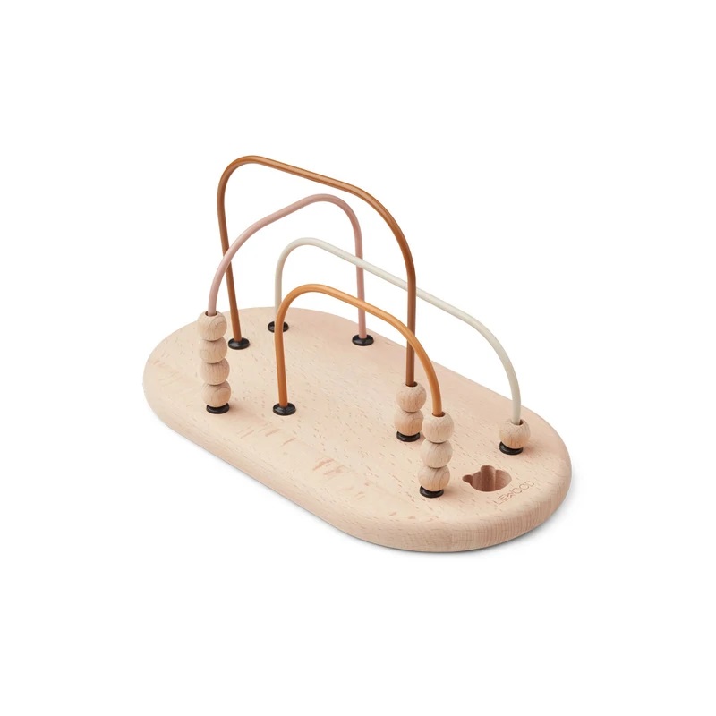 Liewood Ronald puinen helmitaulu Rose Multi Mix on hauska lelu lapselle. Puisella helmitaululla leikkiminen parantaa lapsen silmän ja käden yhteistyötä, koordinaatiota sekä kielen kehitystä ja muodontunnistusta.