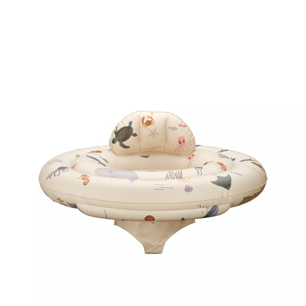 Liewood uimarengas vauvalle Dawn Sea Creature/Sandy on ilmatäytteinen uimarengas, jossa on istuin ja selkätuki. Uimarenkaan avulla lapsi pääsee tutustumaan veteen turvallisesti. Uimarengas sopii 1-3-vuotiaille. Liewood uimarengas merieläinten kuvilla.