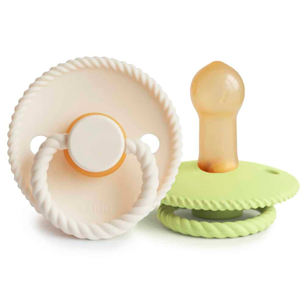 Luonnonkumitutti Frigg Rope 2 pack Size 2, Cream/Green Tea on kahden kappaleen setti tutteja. Friggs tutti on kaunis lisä lastentarvikkeisiisi.
