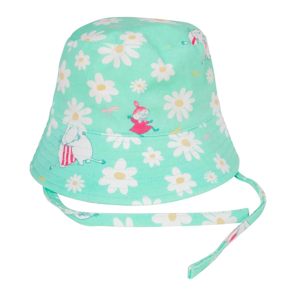 Martinex Muumi hattu vauvalle minttu on nauhallinen hellehattu, jonka mintunvihreällä pohjalla on suloinen Luonnonkukka-kuosi. Lieri suojaa kasvoja ja niskaa auringolta, leuan alle solmittavat nauhat pitävät hatun päässä.