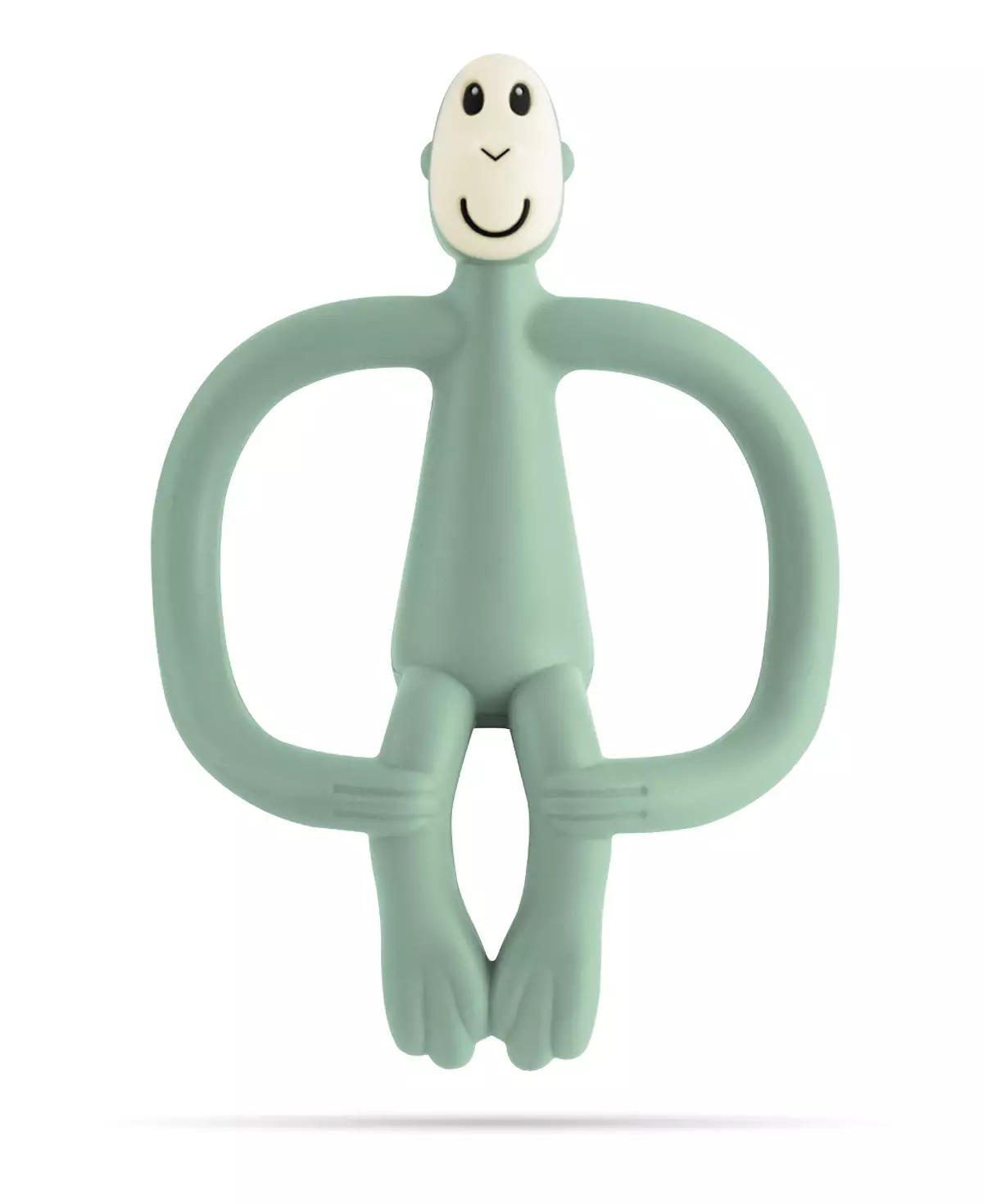 Matchstick Monkey Teething purulelu Mint Green on hauska, joustava ja täydellisen kokoinen pieniin käsiin. Silikonista valmistettu apina-purulelu, jossa on teksturoidut nystyrät, jotka hierovat vauvan herkkiä kutisevia ikeniä. Sisältää BioCote ® -antimikrobisen suojan, joka pitää purulelun raikkaampana ja puhtaampana pidempään, jotta lapsesi voi leikkiä ja pureskella huoletta. Kahvoista on helppo tarttua. Purulelun ergonominen muotoilu auttaa vauvaa kehittämään motorisia taitoja jo varhaisesta iästä lähtien.