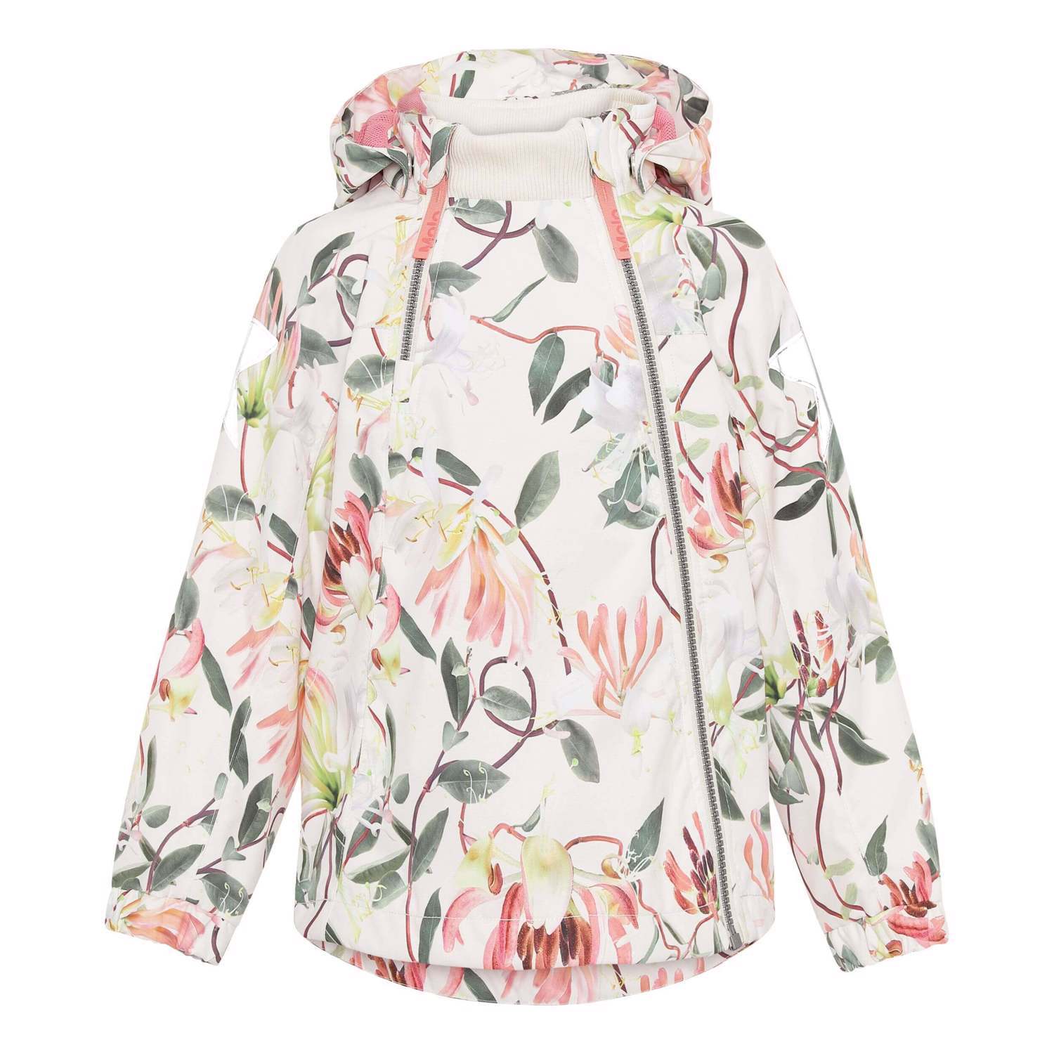 Molo Hopla välikausitakki Garden Dream 2022 on säänkestävä takki kevään ja syksyn ulkoiluun. Vedenpitävän takin kaikki saumat ovat teipatut ja se pitää hyvin tuulta, joten ulkoilu onnistuu säässä kuin säässä. Takissa on herkkä kukkakuosi, jonka väreihin sointuvat monen väriset asusteet ja housut.
