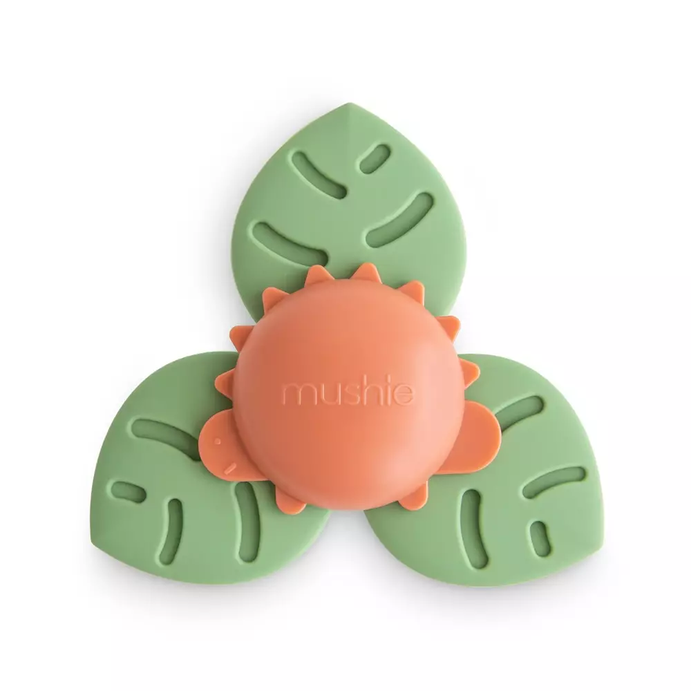 Mushie pyörivä imukuppilelu on hauska dinosauruksen muotoinen aktiviteettilelu lapselle. Lelussa on voimakas imukuppi, jonka ansiosta se pysyy paikallaan leikkien keskellä. Imukupin ansiosta se on myös helppo ottaa mukaan matkoille, tai kylvetys -ja ruokailuhetkiin. Lelu on valmistettu 100% elintarvikelaatuisesta silikonista, ja sen keskellä on suloinen dinosaurus.