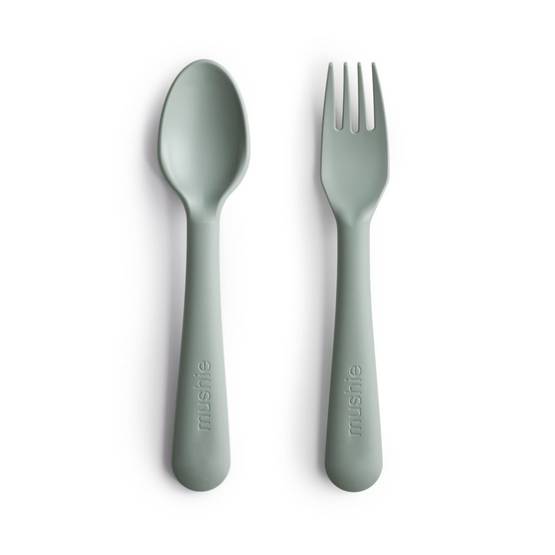 Mushie lusikka ja haarukka lapselle Sage on yksiväriset aterimet lapselle. Mushie haarukkaa ja lusikkaa on helppo pitää kädessä ja ne on suunniteltu lapselle sopivan kokoiseksi.