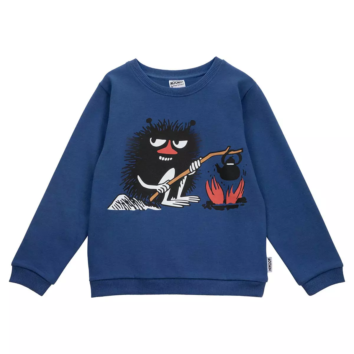 Muumi Haisuli Collegepaita sininen, on pitkähihainen mukava paita suurella Haisulin kuvalla.