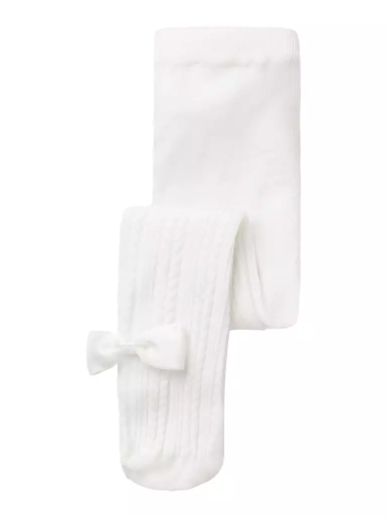 Name It sukkahousut Bright White on suloiset valkoiset vauvan sukkahousut, joita koristaa rusetti. Sukkahousuissa on kaunis palmikkokuviointi, mikä tekee niistä juhlavat.