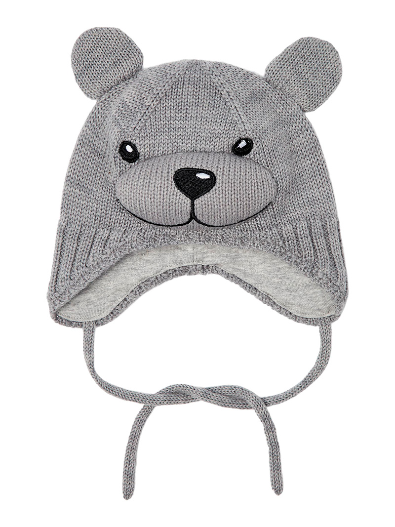 Name It talvipipo Grey melange on merinovillainen pipo talven tuiskuihin. Suloinen pipo nallen korvilla ja naamalla, jossa leuan alle solmittava nauhakiinnitys. Korville tulevassa pipossa on tuulelta suojaavat korvaläpät.