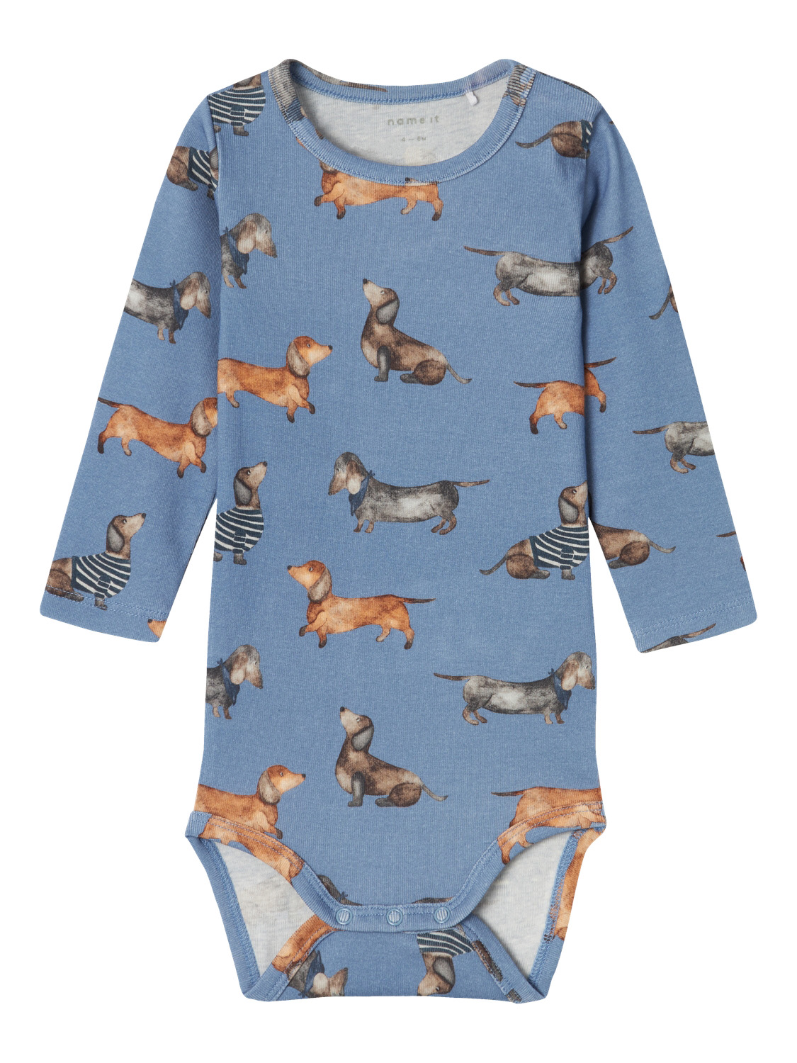 Name It pitkähihainen body vauvalle suloisilla koiran kuvilla.