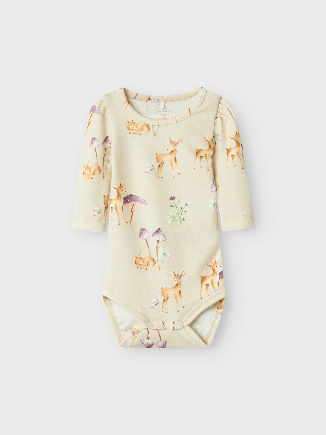 Name It pitkähihainen body vauvalle suloisilla bambin kuvilla.