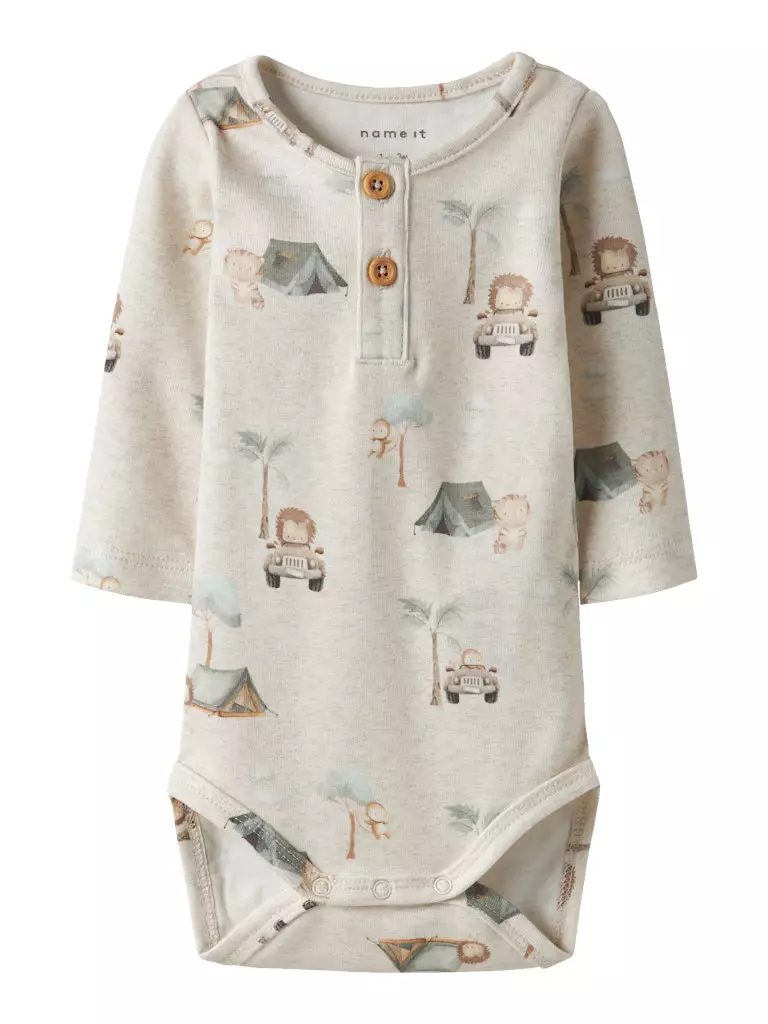 Name It vauvan body Peyote Melange värissä. Vaalea body on erittäin pehmoinen ja mukava vauvan päällä.