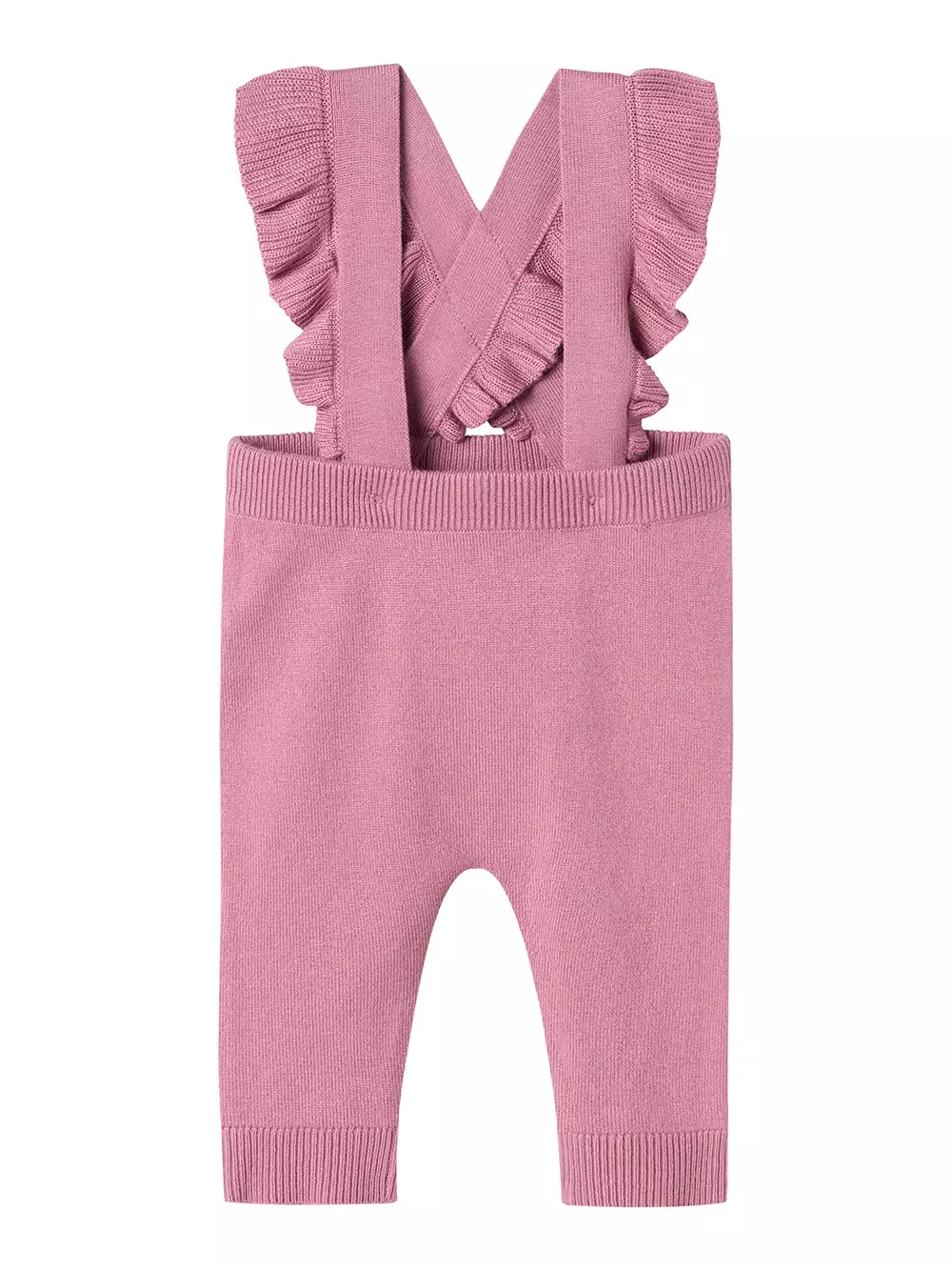 Name It vauvan housut Mauve Orchid on suloiset dungarees housut, joiden olkaimia koristaa frillat. Housuissa on hyvin tilaa vaipalle ja ne ovat pehmeää ja joustavaa viskoosia.