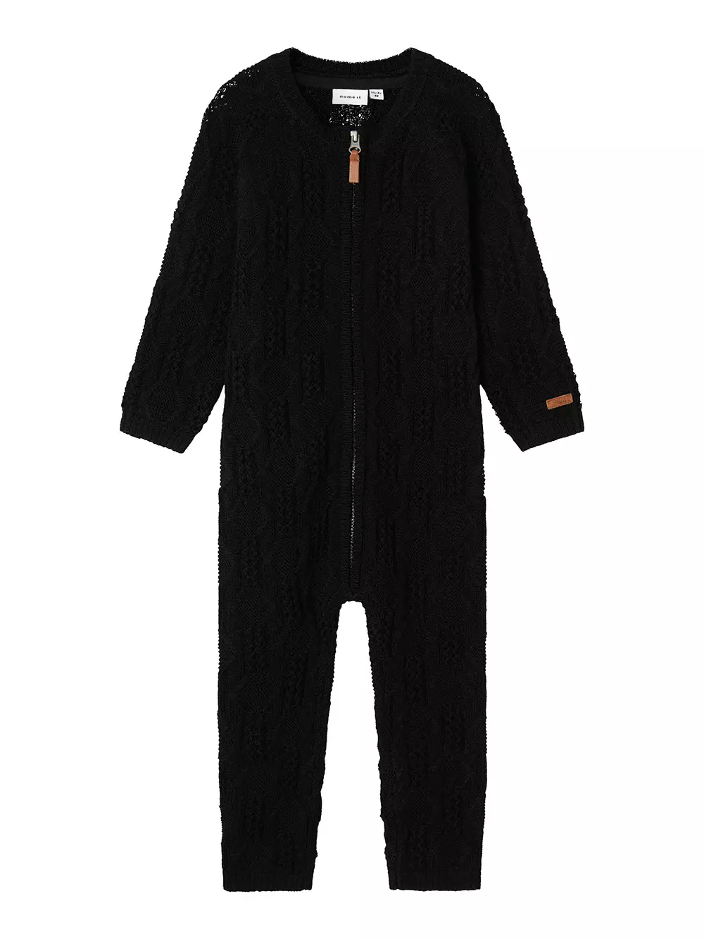 Musta Name It merinovillahaalari lapselle sopii syksyyn ja talveen. Pitkä vetoketju helpottaa pukemista, hihoissa ja lahkeissa resorit.