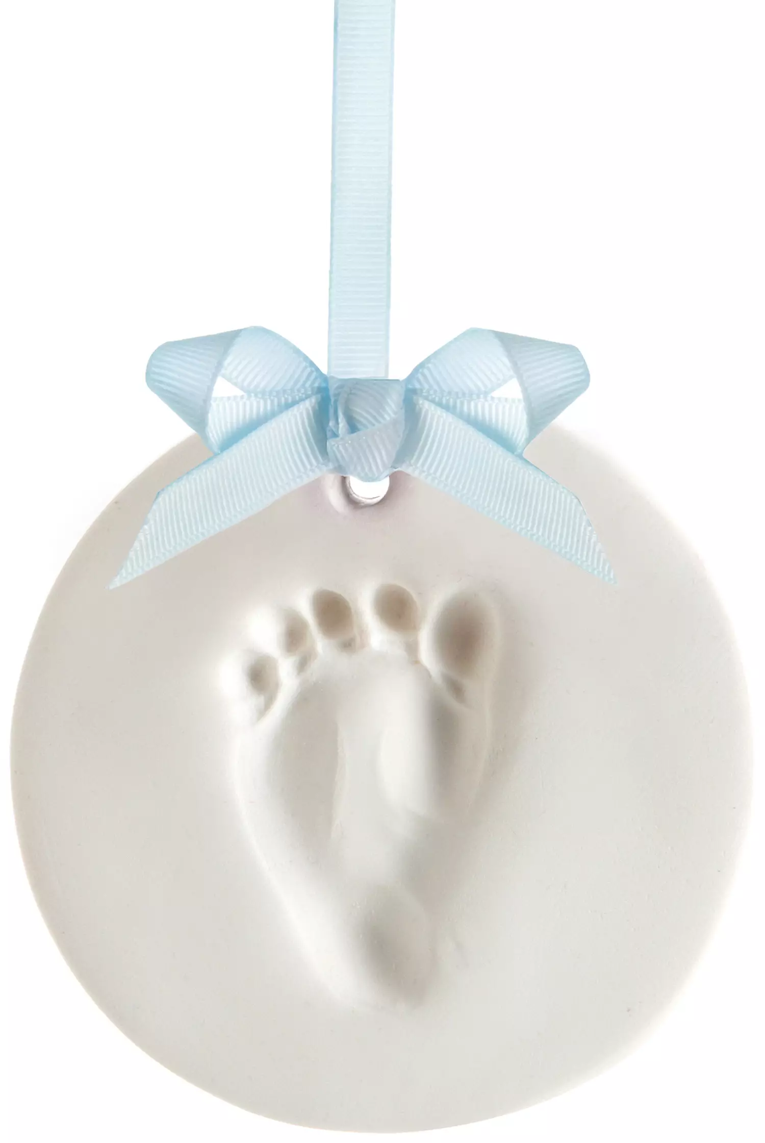 Pakkaus sisältää kaikki tarvikkeet ihanan muistoesineen luomiseen: savimassaa, kolmea eriväristä nauhaa sekä muotin. Savi ei vaadi sekoittamista tai paistamista. Vaivaa savea ja kauli se muottiin sopivan kokoiseksi. Paina vauvan käsi tai jalka pehmeään myrkyttömään ja ilmassa kuivuvaan savimassaan. Jos jälki ei onnistu kerrasta, ei hätää, voit tehdä sen uudelleen niin monta kertaa kuin haluat. Kun olet tyytyväinen painatukseen, tee muotilla ympyrä ja reikä nauhalle. Poista sitten ylimääräinen savi ja anna asen kuivua 1-2 päivää.