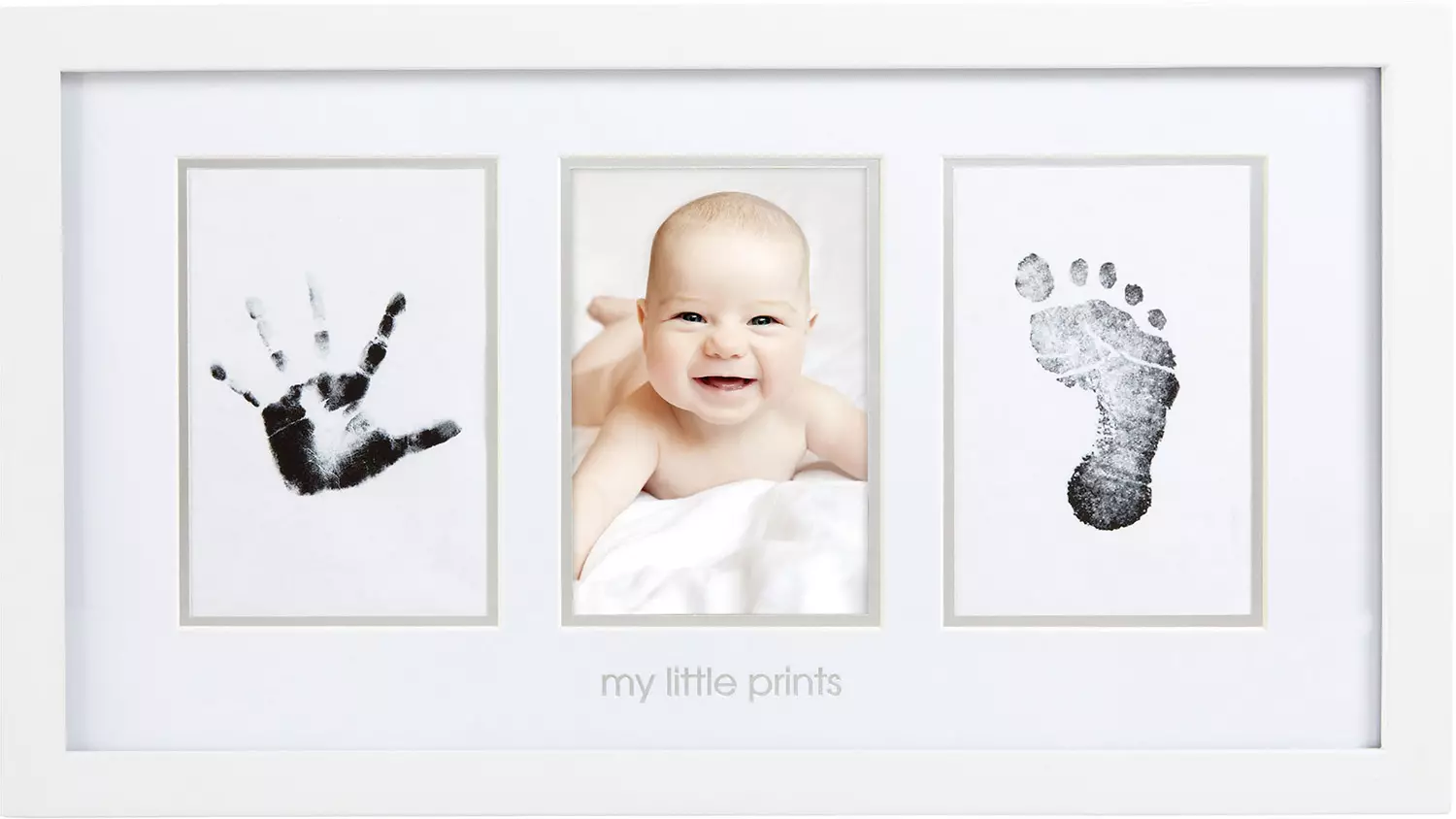 Pearhead Valokuvakehys 3-osainen Babyprints photo frame White. Luo ja tallenna ihana muisto pienokaisesi käden- ja jalanjäljestä kauniiseen valkoiseen valokuvakehykseen. Perhead Clean-Touch kädenjälkikuva on helppo ja siisti tapa ikuistaa jalan- ja kädenjälki. Painatuksessa ei synny sotkua, sillä lapsen iho ei kosketa mustetta.