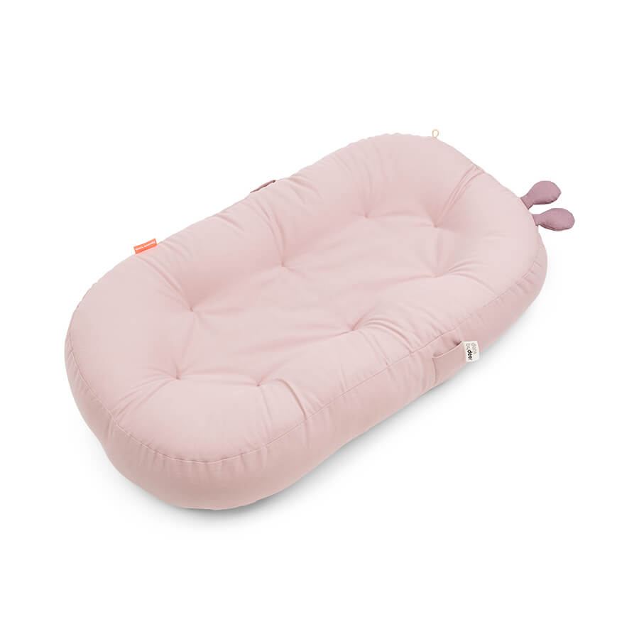 Pehmustettu vauvan leikkimatto Done By Deer Cozy Lounger Raffi Powder on viihtyisä paikka lapselle.