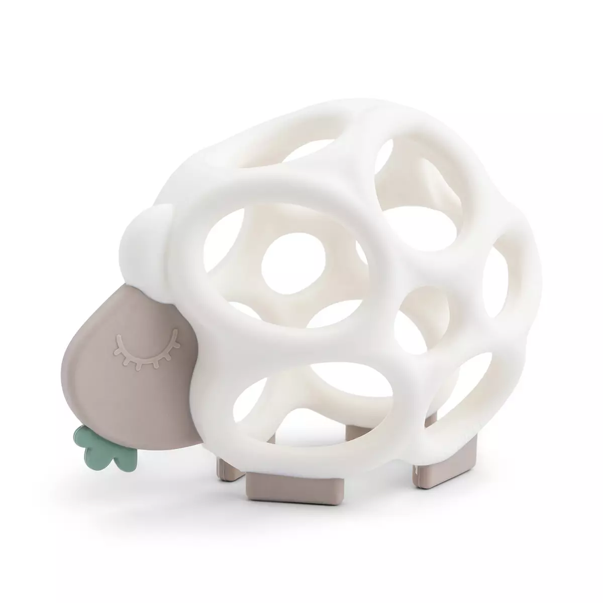 Pehmeästä elintarvikesilikonista valmistettu purulelu antaa vauvan pienille sormille mielenkiintoista puuhaa. Lampaan muoto ja sen suuret reiät tekevät siitä hlposti tartuttavan.