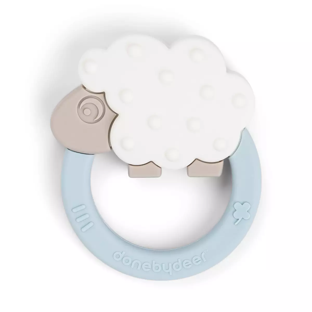 Lisää helpotusta laittamalla purulelu hetkeksi jääkaappiin. Vaaleansinisessä purulelussa on suloinen Sheepy-lammas.