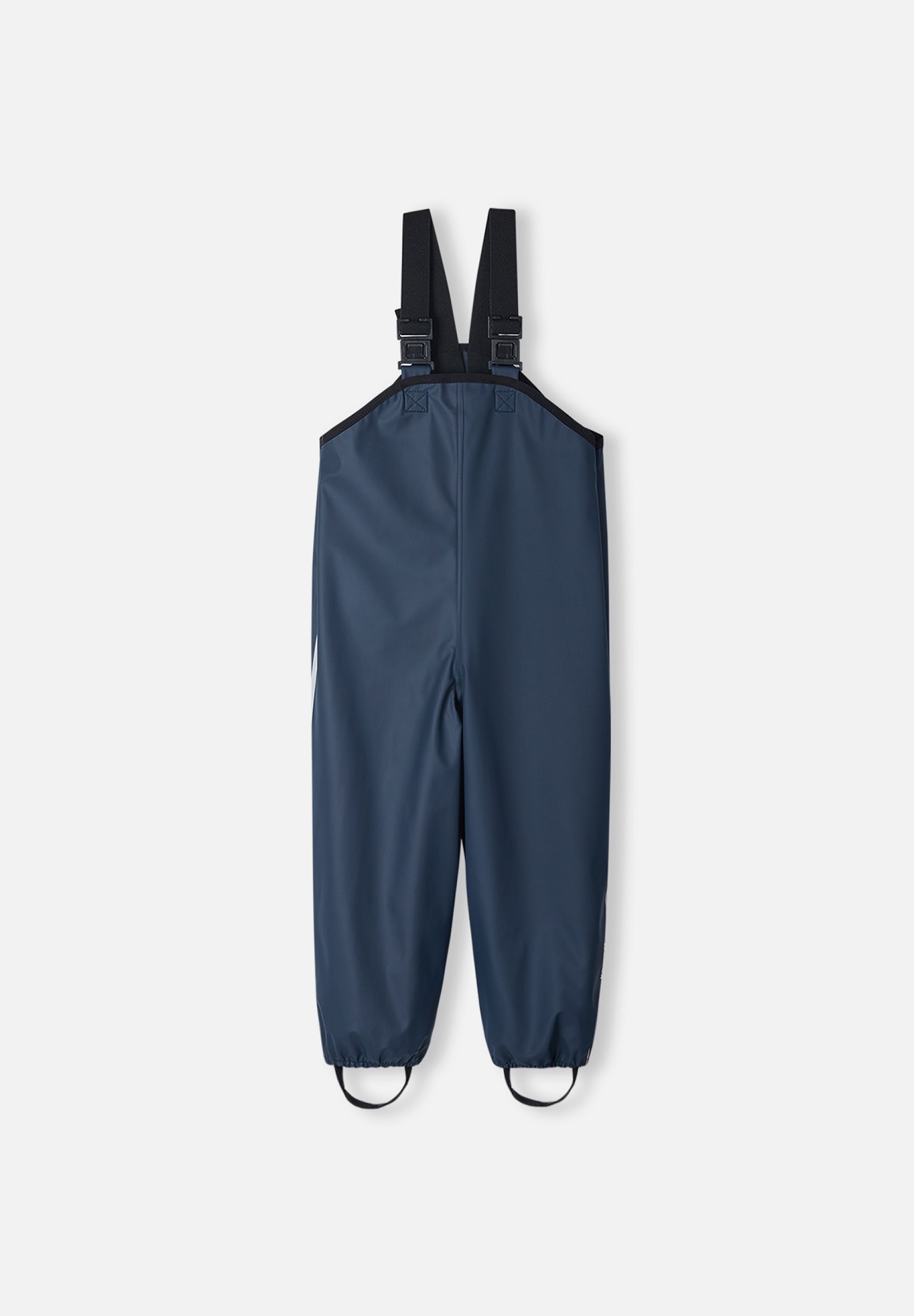 Kurahousut jokasään seikkailijalle niin sateeseen, loskaan kuin lammikossa kierimiseenkin. Henkelit pitävät housut ylhäällä.