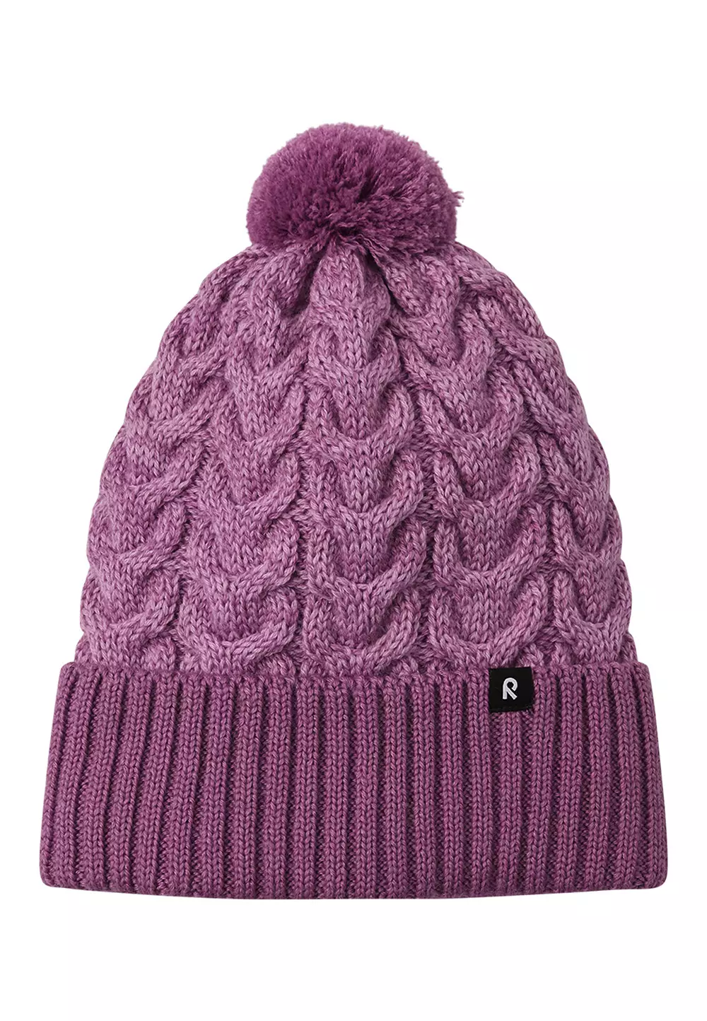 Reima Routii talvipipo Red violet on tyylikäs ja lämmin villasekoiteneulos pipo, joka pitää pään lämpimänä yhdessä pehmeän fleecevuoren kanssa, jossa mukavat tuulenpitävät korvalliset. Pipossa on kaunis palmikkokuviointi, paksu leveä käännetty reuna sekä pörröinen tupsu.