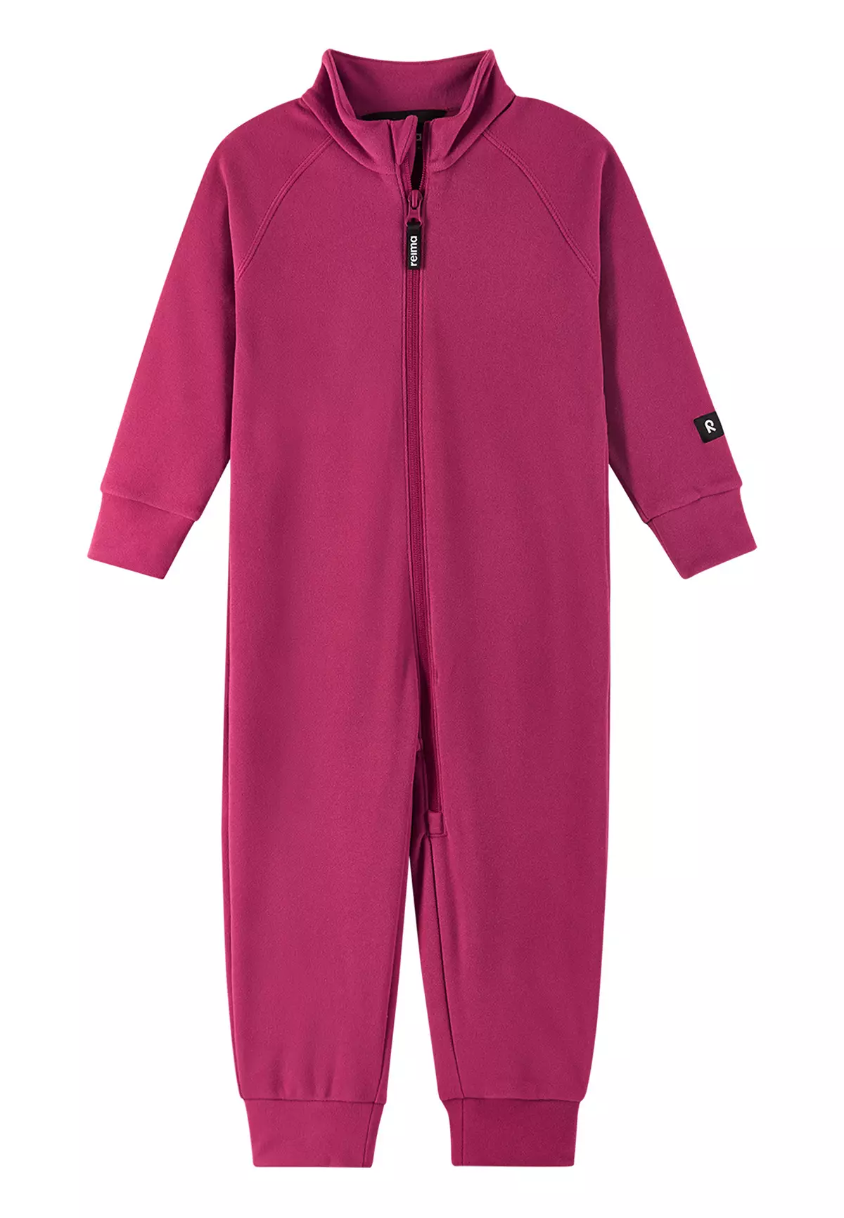 Reima Tarhaan fleecehaalari Cool burgundy sopii taaperolle syksyn ja talven viileisiin päiviin lämmittämään haalarin alle. Lämmin, mutta kevyt haalari on miellyttävän joustavaa materiaalia, joka on valmistettu harjatusta fleecestä.