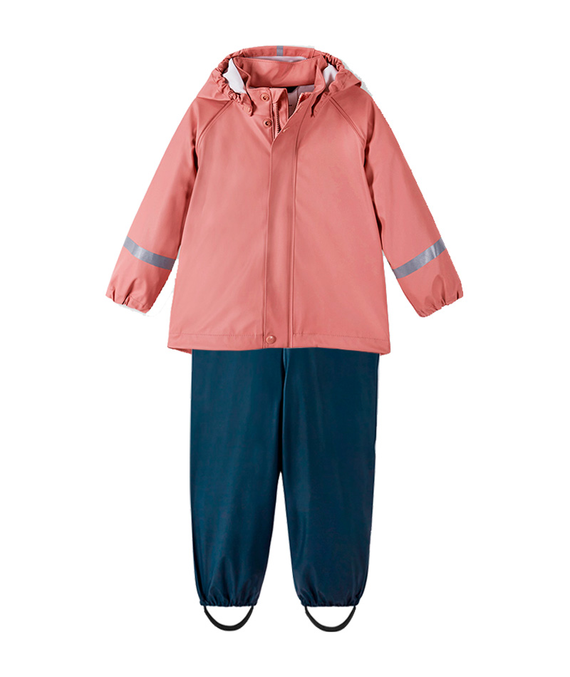 Reima Tihku sadeasu Rose blush sopii nimestään huolimatta myös kaatosateeseen, sillä takin ja housujen kaikki saumat ovat hitsattu vedenpitäviksi. Takki ja housut ovat täysin vedenpitävät, mutta ilman PVC:tä. Vetoketjullinen takki on helppo myös lapsen pukea itse päälleen. Joustavat hihansuut, sekä turvallinen, irrotettava huppu, joka irtoaa itsestään jäädessään johonkin kiinni.