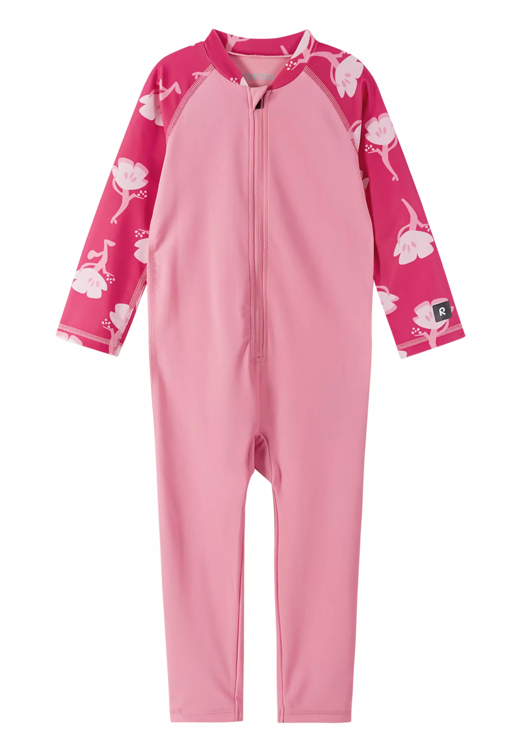 Reima Polskii uimapuku korkealla UV-suojakertoimella. Pinkki pitkähihainen ja pitkälahkeinen uimahaalari lapselle.